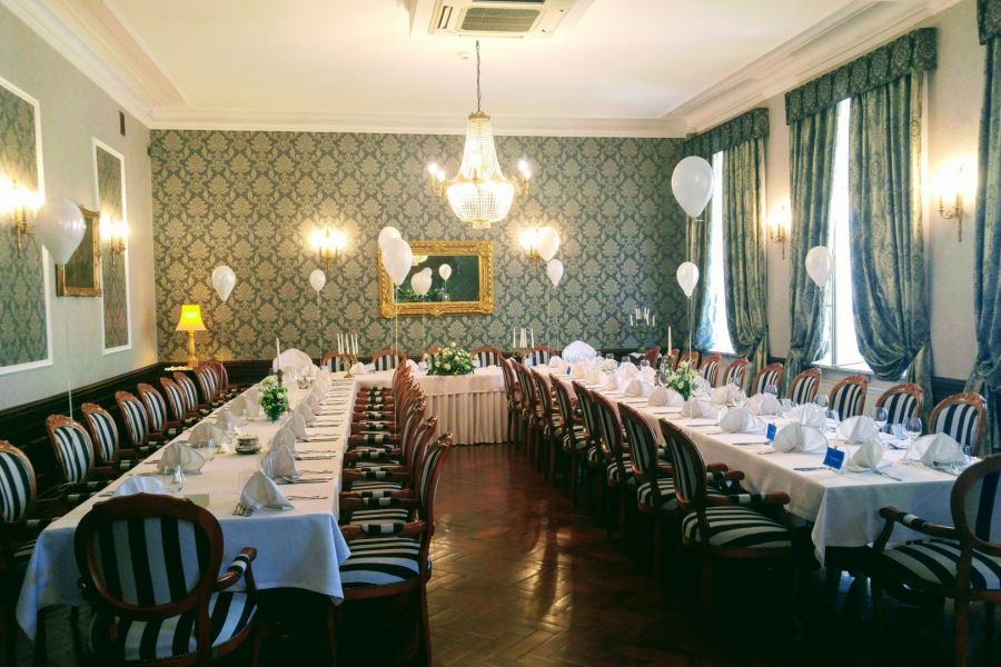 W Pałacu przykładamy więc szczególną uwagę do każdego drobiazgu. Dlatego proponujemy jedną z naszych dwóch wspaniałych sal o nazwie Kominkowa. Jest to najmniejsza sala, ale bardzo kameralna w sam raz na spotkanie z najbliższą osobą na romantyczną kolację przy uroku nastrojowego kominka.